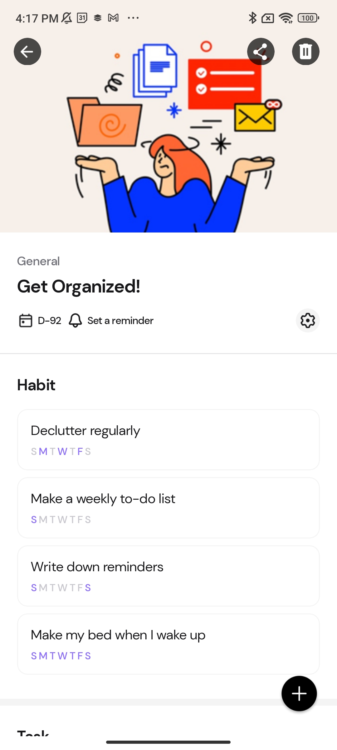 There you have it. Dreamfora will now send you a reminder at 5 p.m. for the habit of "Declutter regularly."
