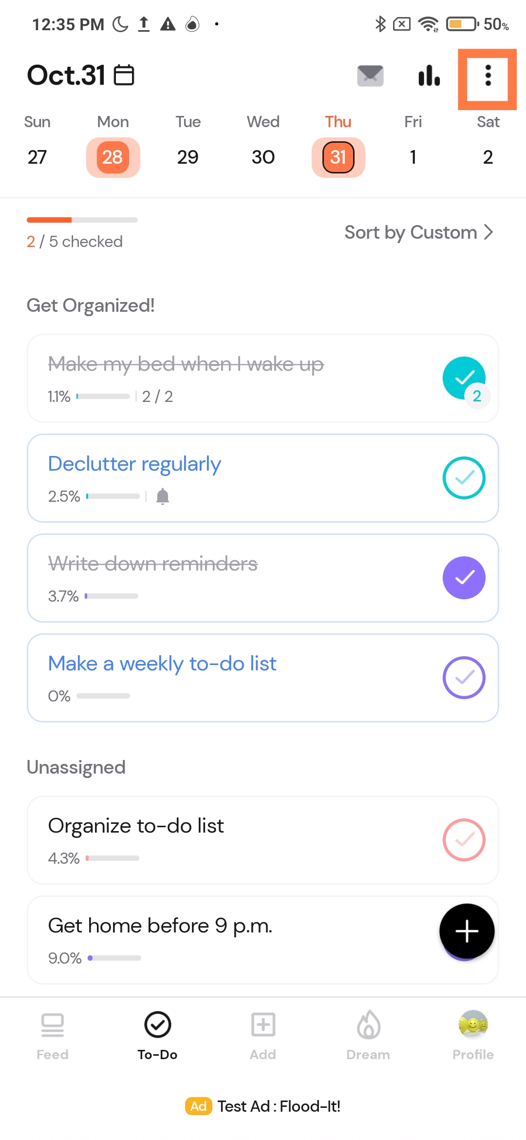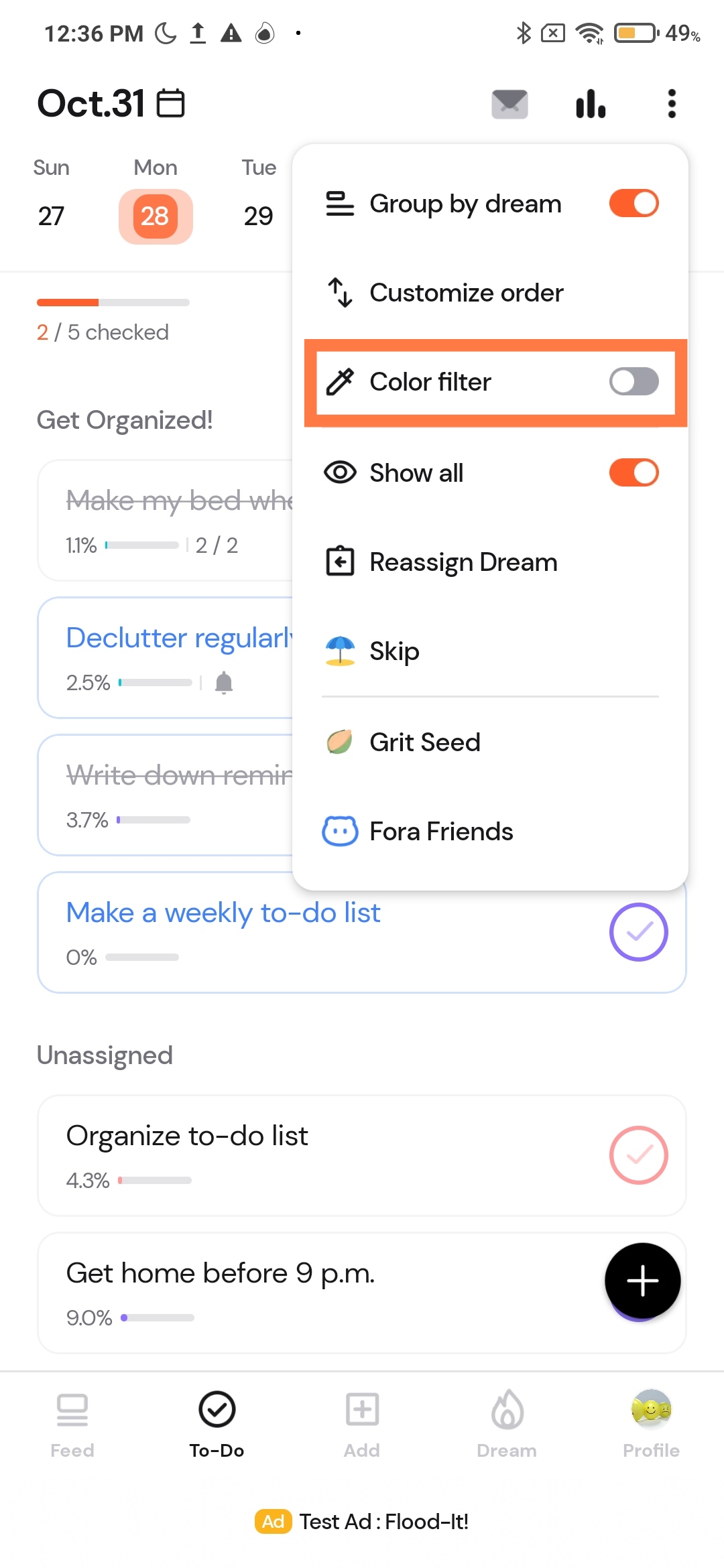 And that's it! To see all of your Habits/Tasks of a specific color, select the 3-dots on the upper right corner of the To-Do page.